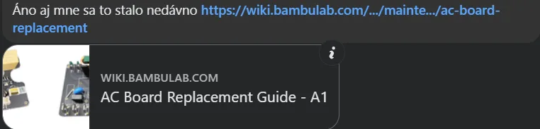 Stejný problém mají i uživatelé v Česku i na Slovensku https://www.facebook.com/groups/bambulabczsk/permalink/1623606298810565/