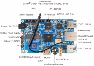 K tomu 512MB DDR3 RAM, jako storage je použit už klasický microSD card slot, Gigabit Ethernet (místo 100Mbit) (RTL8211E-VB-CG chip).