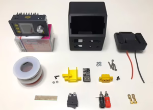 Krabičku drží pohromadě 4 šroubky se zápustnou hlavou M3x30 v rozích krabičky. Krabička samotná i držák vrtačky a knoflík pro regulaci jsou vytištěny z materiálu PETG, který má vhodné mechanické vlastnosti, dobrou tepelnou a elektrickou odolnost, a také se dobře tiskne.