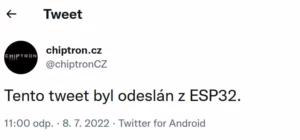 ...k twitter.com ! Instalace knihovny je velmi jednoduchá, stačí jí stáhnout jako ZIP a nainstalovat v Arduino IDE. A jak se používá ve vašem kódu? Uplně jednoduše! twitter.sendTweet(„Hello World!“); –...