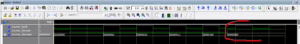 Na následujícím obrázku vidíte spuštěnou simulaci. Kliknutím myši na ono simulace se objeví kurzor, který vlevo (/tb/a např) ukazuje ukazuje aktuální hodnotu signálů.