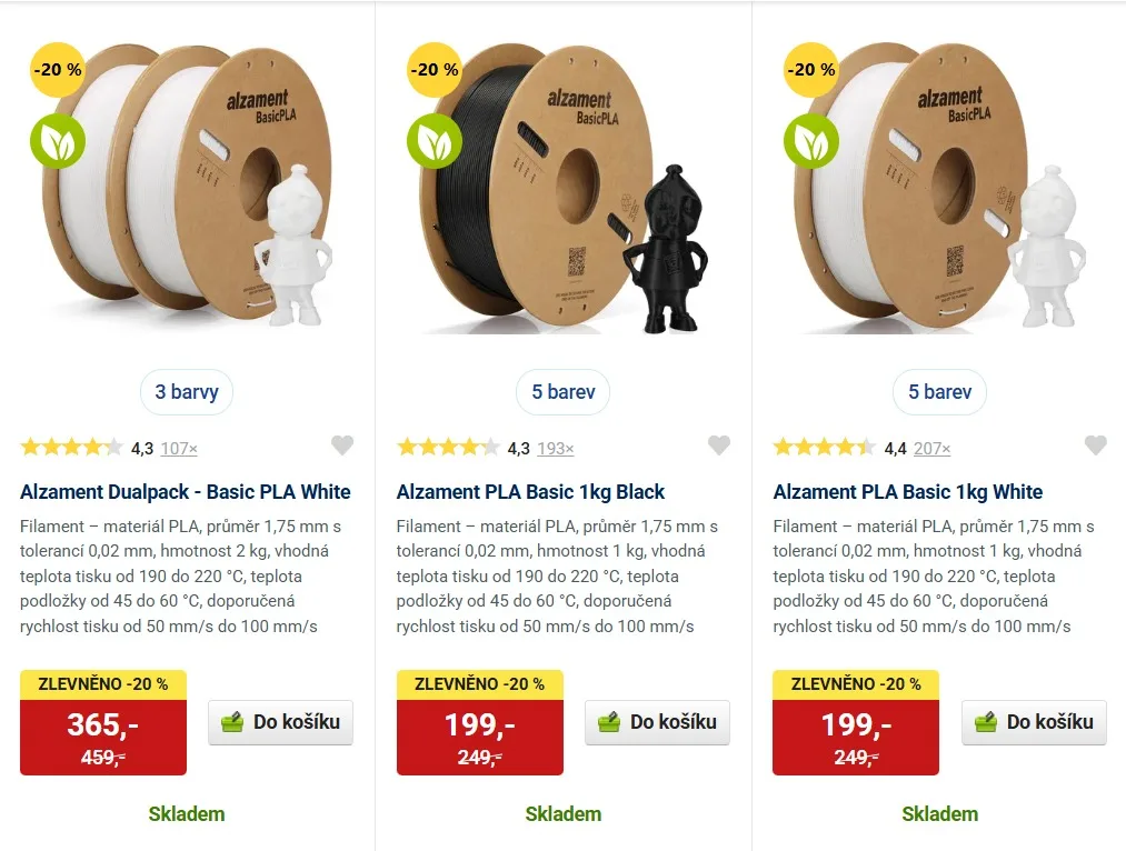 Některé filamenty s až 29% slevou (alzament)